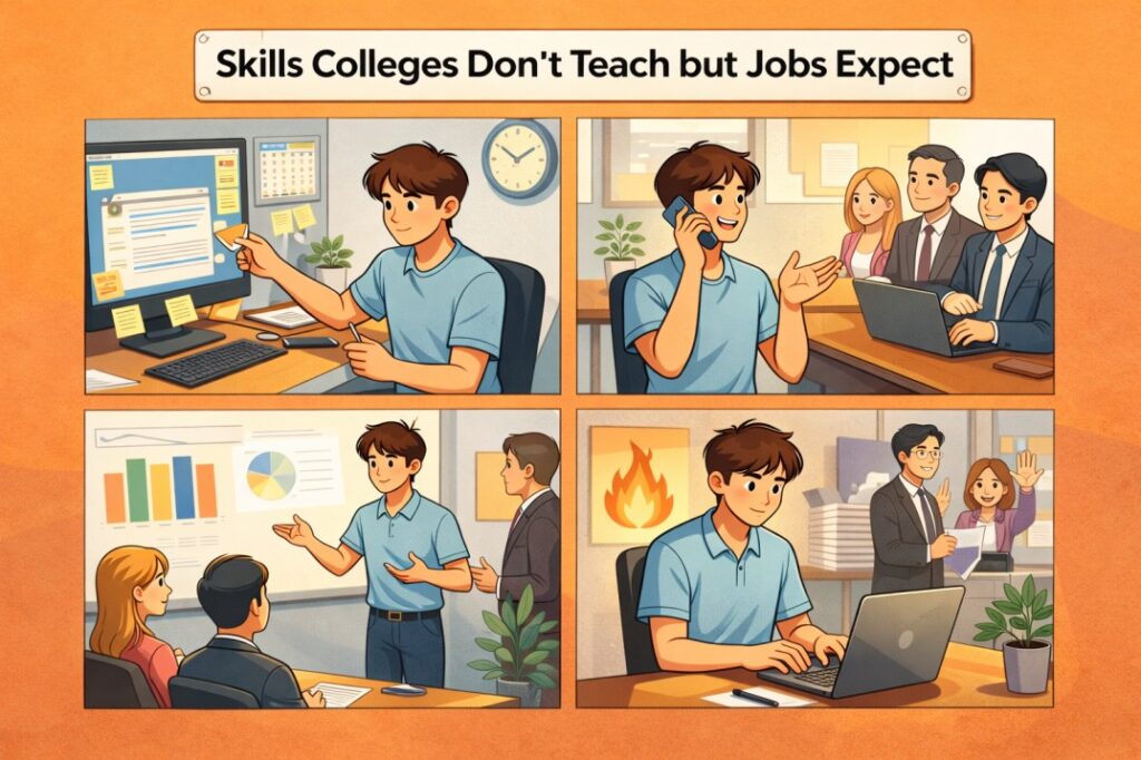 In this article, we will explore the important skills colleges don’t teach but modern workplaces expect. You will also learn practical ways to start developing these abilities during college.